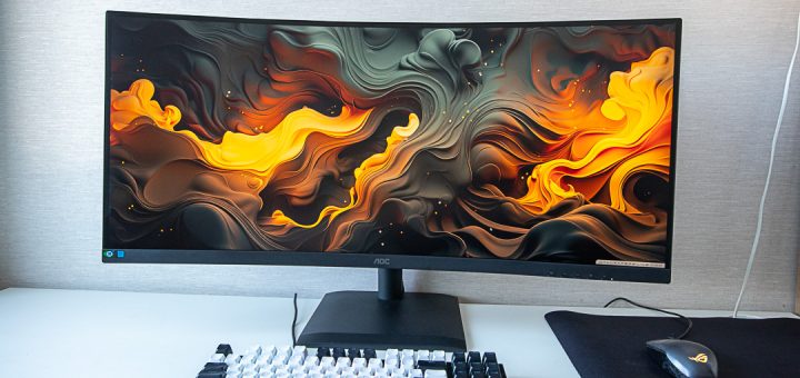 „AOC CU34E4CW“: Iššokanti kamera, USB-C su 90 W įkrovimu ir kitos darbinės funkcijos