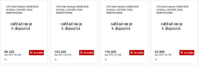 Keletas šių būsimų procesorių pastebėti elektroninėse parduotuvėse. Tuo pačiu pateikiamos ir kainos. Suprantama, jos nėra oficialios ir išleidimo metu gali būti visai kitokios. Galingiausias iš paviešintų procesorių yra „Core i5-10600“. Tai 6 branduolių ir 12 gijų procesorius už 279 € kainą. Lyginant su pirmtaku i5-9600, matome 15 € didesnę kainą, bet naujas procesorius turi įgalintą HT technologiją. Tai yra, papildomas šešias gijas. Kitas kainas galite pamatyti „Videocardz“ lentelėje.