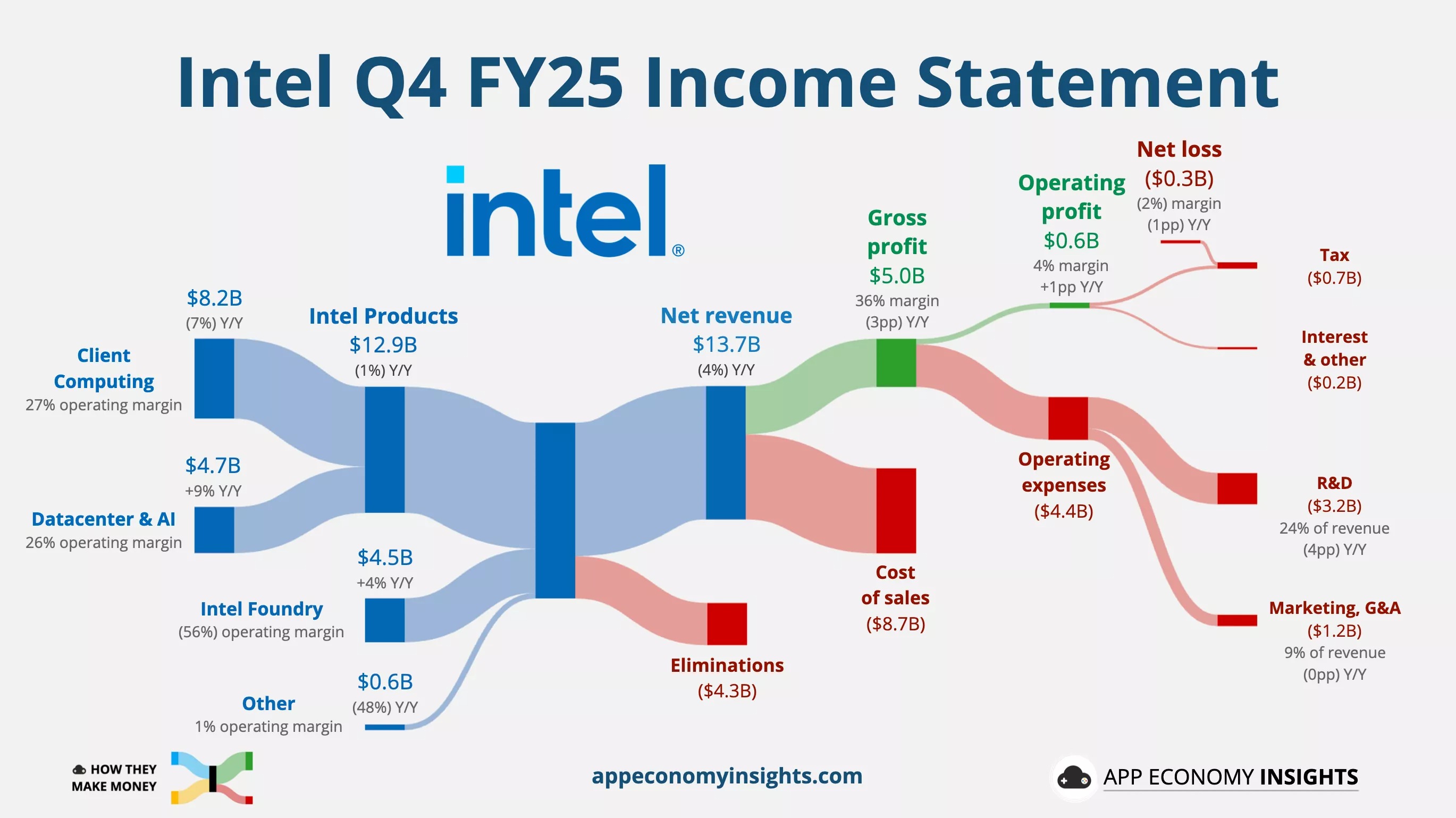 „Intel“ ketvirtojo ketvirčio rezultatai atspindėjo didėjantį jos AI ir duomenų centrų produktų paklausą, kurią kompensavo nuolatiniai tiekimo apribojimai, kurie toliau daro spaudimą jos vartotojų segmentui. Puslaidininkių gigantas pranešė, kad 2025 m. ketvirtojo ketvirčio pajamos siekė 13,7 mlrd. JAV dolerių, tai yra 4 proc. mažiau nei praėjusiais metais, bet beveik atitinka aukščiausią prognozę. Metinės pajamos šiek tiek sumažėjo nuo 53,1 mlrd. JAV dolerių iki 52,9 mlrd. JAV dolerių.