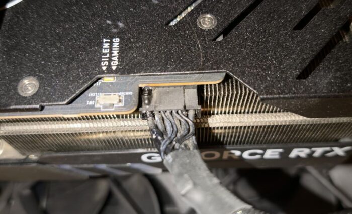 Savininkas priduria, kad kompiuteris vis dar veikė, kai jis pastebėjo dūmus, tačiau jo nebuvo galima išjungti įprastu būdu, todėl jis atjungė sistemą nuo elektros lizdo. Prie įrašo pridėtose nuotraukose matyti akivaizdūs pažeidimai aplink GPU pusės maitinimo jungtį, o maitinimo bloko pusės jungtis, kaip teigiama, neišsilydė, nors pats kabelis atrodo patamsėjęs. Naudotojas teigia, kad po gedimo kabelio nebuvo galima ištraukti.