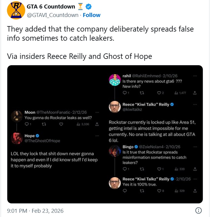 Pasak kai kurių žaidimų pramonės specialistų, taip yra todėl, kad „Rockstar“ šiuo metu yra „uždaryta kaip Area 51“, todėl neįmanoma gauti jokios informacijos. Paklaustas apie gandus, kad „Rockstar“ kartais skleidžia klaidingą informaciją, siekdama sugauti informacijos nutekėintojus, Reece „KiwiTalkz“ Reilly atsakė, kad tai „100 % tiesa“. Skleisti šiek tiek skirtingą, atsekamą informaciją skirtingiems žmonėms ir stebėti, kuri versija pasirodo viešai, yra tai, ką, kaip gandai sako, praktikuoja ir kitos žaidimų kompanijos.