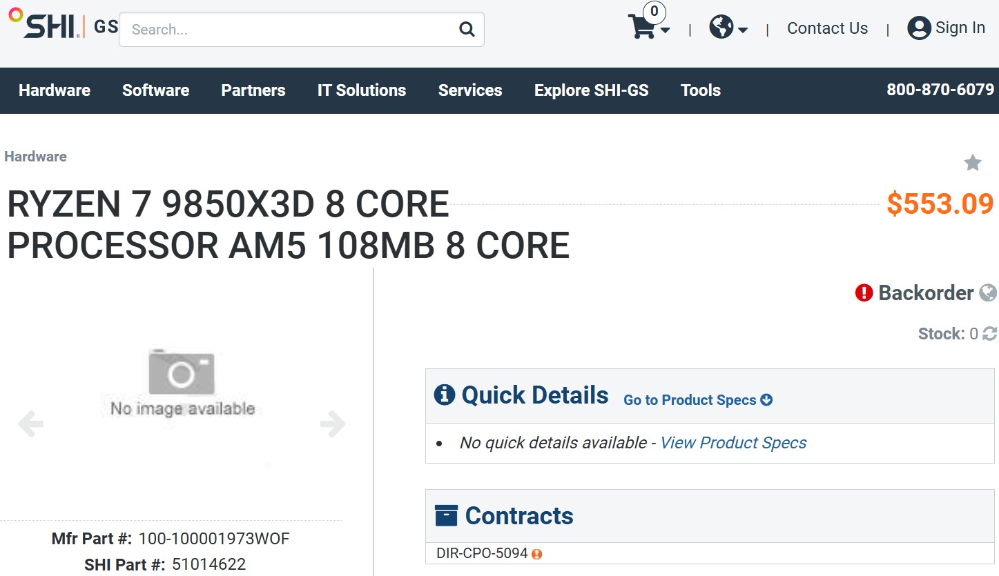 „CHI“ Produktų puslapyje procesorius yra nurodytas kaip užsakytas, o tai rodo, kad mažmenininkas jau tikisi gauti prekę. Dabartinė kaina yra 553 JAV doleriai, tai yra apie 70 JAV dolerių daugiau nei 9800X3D išleidimo metu. Neoficialiai tikimasi, kad „Ryzen 7 9850X3D“ bus išleistas CES 2026 parodos metu.