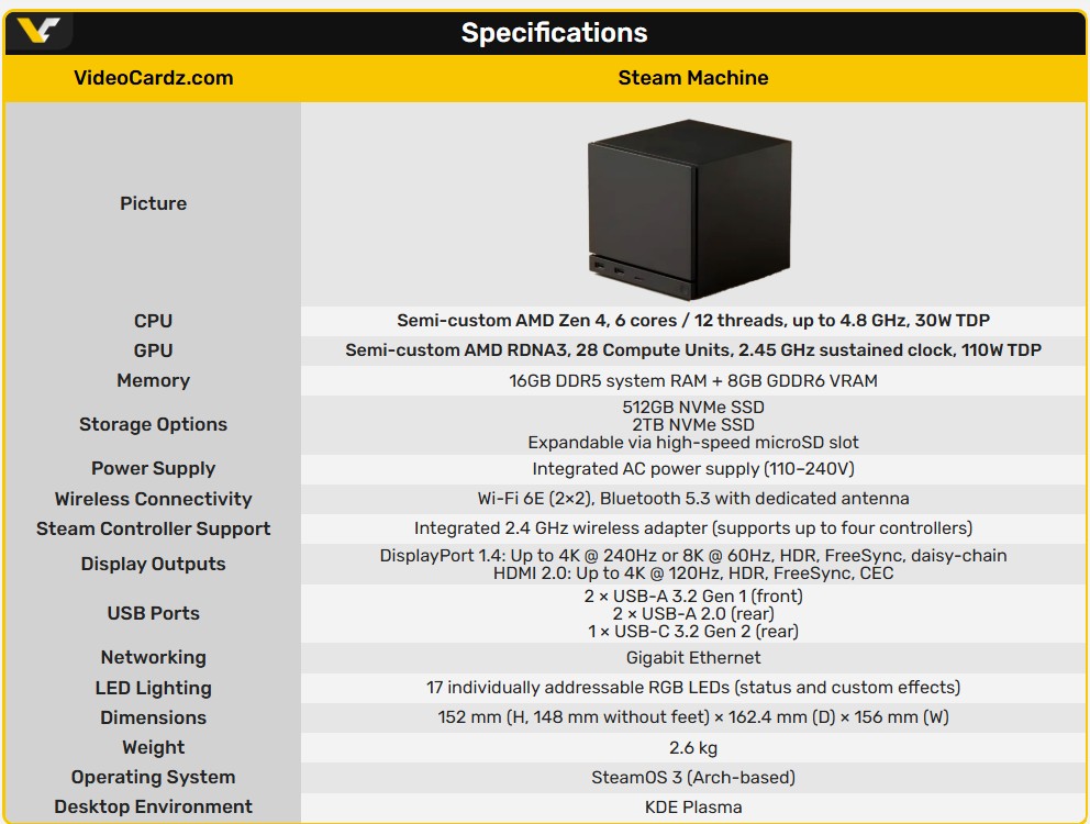 Neseniai „Linus Tech Tips“ pasidalijo informacija, kad jie „Valve“ darbuotojams pateikė galimą 500 JAV dolerių kainą, tačiau, kaip pranešama, reakcija rodė, kad ši suma nėra realistiška. Kartu su pranešimais apie „Samsung“ DRAM kainų padidėjimą, rinka dabar tikisi, kad „Steam Machine“ kaina bus apie 800–900 JAV dolerių, be platformos subsidijų, kurias „Sony“ ir „Microsoft“ naudoja „PlayStation“ ir „Xbox“ aparatūrai.