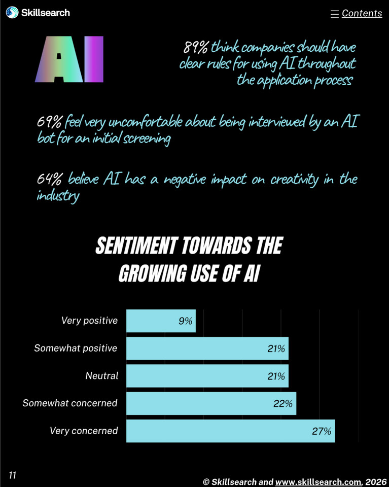 Paskelbta „Skillsearch 2026“ žaidimų ir imersyvių technologijų atlyginimų ataskaita, kurioje pateikiami tyrimo rezultatai, atskleidžiantys išvadas, susijusias su dirbtiniu intelektu, įdarbinimu ir žaidimų pramonės tendencijomis. Nors duomenys yra įspūdingai nuoseklūs, ataskaitoje galima išskirti keletą pagrindinių išvadų, kurios atspindi pesimistines prognozes tiek dėl dirbtinio intelekto, tiek dėl žaidimų pramonės apskritai. Nepaisant to, kad daugelis didžiausių žaidimų pramonės studijų visapusiškai investuoja į AI, tik 29 % apklaustųjų dirbo įmonėse, kuriose buvo nustatyta politika ar gairės dėl etiško AI naudojimo. Iš pačių žaidimų pramonės darbuotojų, kurių sudėtis buvo labai įvairi – nuo vadovų, personalo ir operacijų iki menininkų, programuotojų, dizainerių ir rašytojų, net 64 % mano, kad AI daro neigiamą poveikį kūrybiškumui žaidimų pramonėje, o 52 % nurodė, kad jie arba jų įmonė pradėjo naudoti AI įrankius savo darbo procesuose.