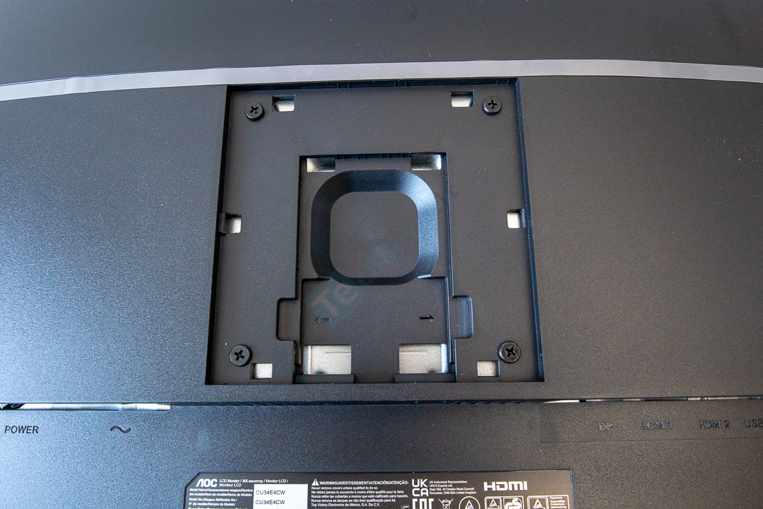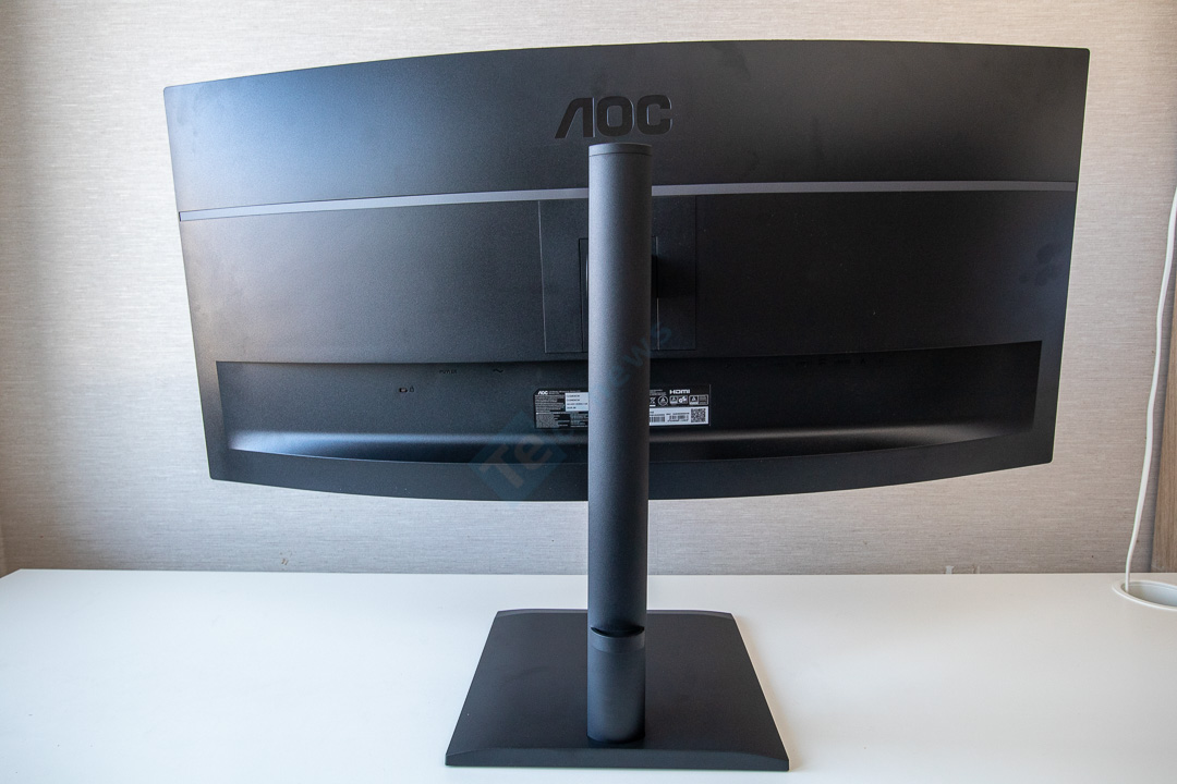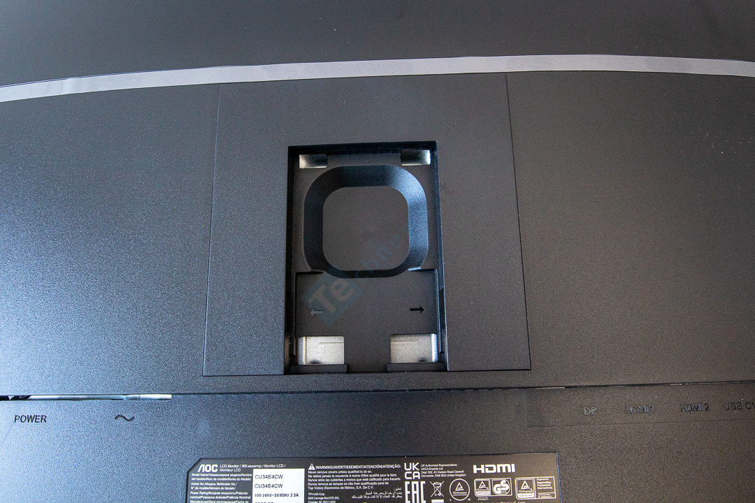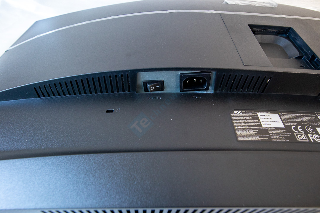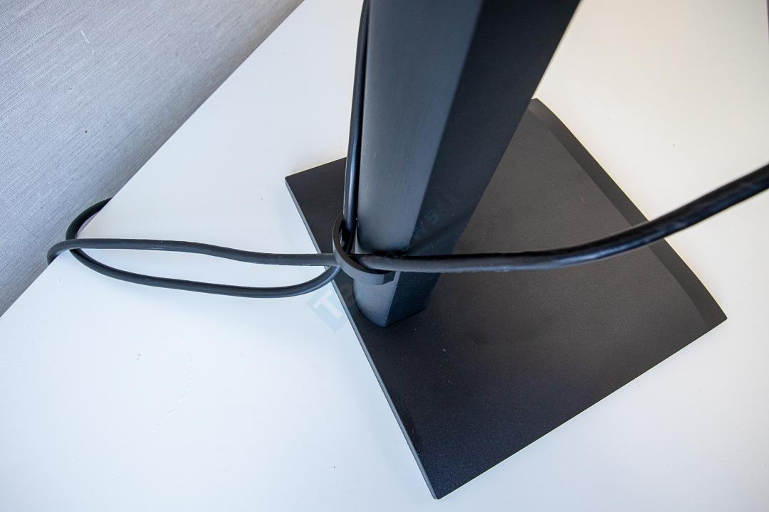 „AOC CU34E4CW“ stove dar įmontuotas laikiklis laidams pravesti.