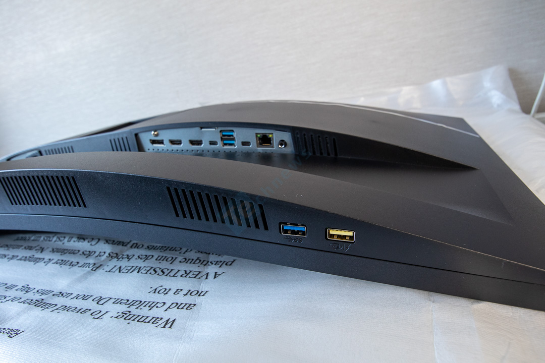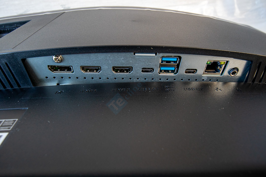 Jungčių kiekis yra didesnis nei įprastame monitoriuje. Gauname ne tik įprastas Displayport bei HDMI jungtis, bet tuo pačiu USB šakotuvą su USB-A ir USB-C jungtimis. USB-C tuo pačiu gali priimti vaizdą ir iki 90 W galia tiekti energiją nešiojamam kompiuteriui. Tai ypač svarbu dirbantiems, nes prijungus savo nešiojamą kompiuterį jis neišsikraus. Šis monitorius taip pat turi įmontuotą KVM jungiklį.
