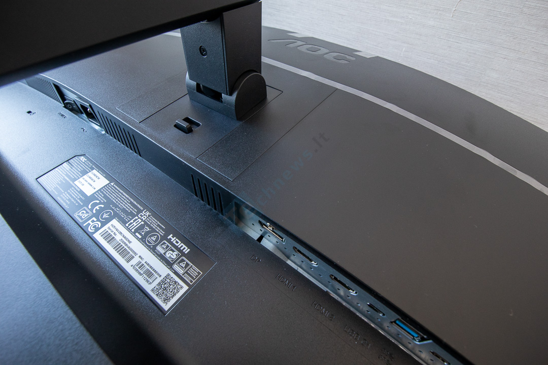 Monitoriaus galas visas juodas, viršuje matome ir neryškų AOC logotipą. Galine dalis irgi atrodo švariai, jokių priekaištų. Tiesa, ant plastmasės kiek lieka pirštų atspaudai.