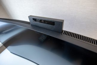 Viršuje užmaskuota išlendanti sala. Joje yra įmontuota kamera su „Windows Hello“ palaikymu, tad galima atrakinti savo paskyrą su savo veidu. Tokia funkcija pritaikyta darbo erdvėms, bet gali būti patogiai naudojama ir namuose. Prie kameros mechanizmo reikės kiek pratintis, norint, kad kamera išlįstų reikia spausti per vidurį. Spaudžiant viename iš šonų neatsilaisvina fiksatoriai.
