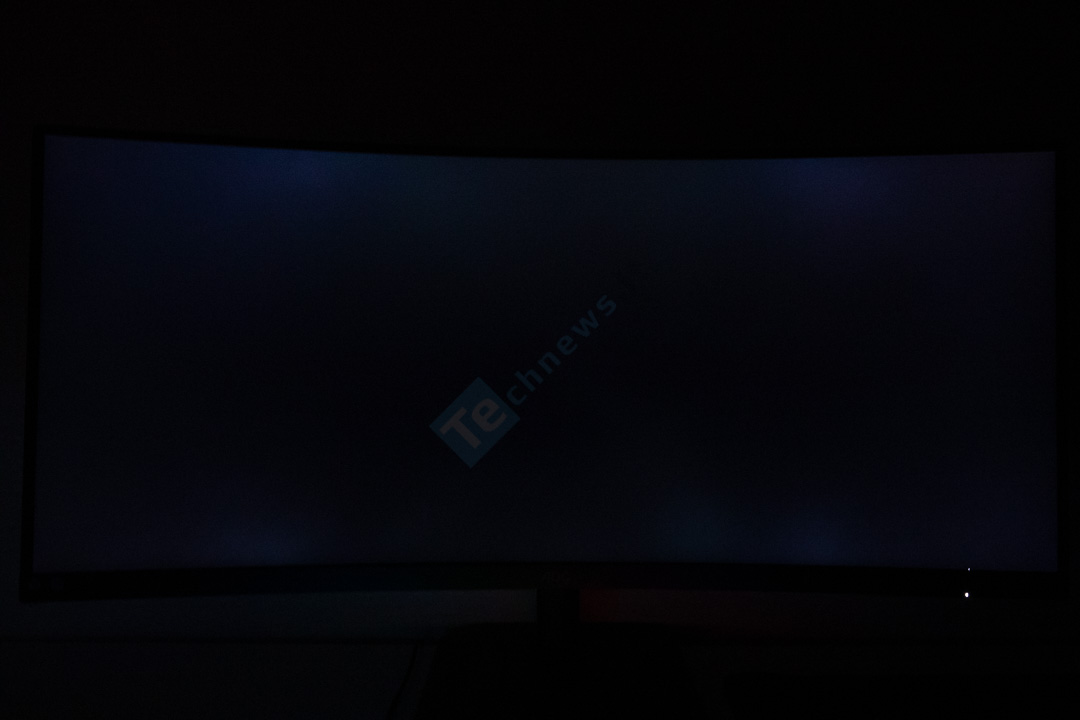 „AOC CU34E4CW“ apšvietimo kraujavimas yra sunkiai pastebimas ir problemų tikrai nekels. Tik tamsoje ir parinkus juodą foną galime pastebėti apšvietimo netolygumus su maksimaliu ryškumu. Naudojant 120 kandelų ryškumą apšvietimo netolygumas yra tik vos matomas. Kaip matote iš nuotraukų, su maksimaliu ryškumu prasčiausia situacija yra apačioje ir viršuje.