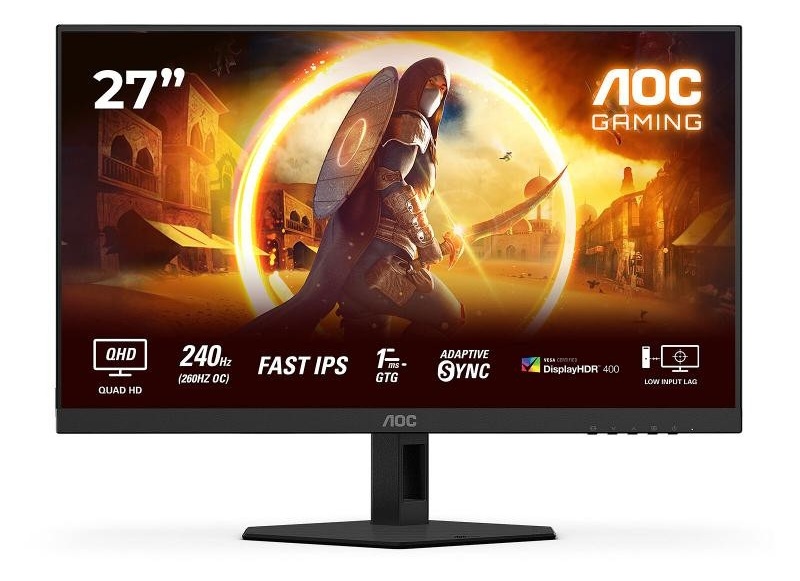 Šį kartą apžvalgai gavau „AOC GAMING Q27G4ZR“ monitorių, kuris turi minėtą 27 colių ir 2560 x 1440 rezoliucijos derinį. Tai yra vienas pigesnių AOC 27 colių 1440p monitorių, bet jis tikrai nebus prastas. Gauname pagerintą Fast IPS panelę, dėl ko jos GtG atsako laikas tik 1 ms, o MPRT atsako laikas tik 0,3 ms. Gamintojas taip pat siūlo iki 260 Hz atnaujinimo dažnį ir adaptyvaus kadrų sinchronizavimo galimybę. Q27G4ZR yra įprasto AOC dizaino ir kitose srityse nelabai kuo išsiskiria nuo pirmtakų.