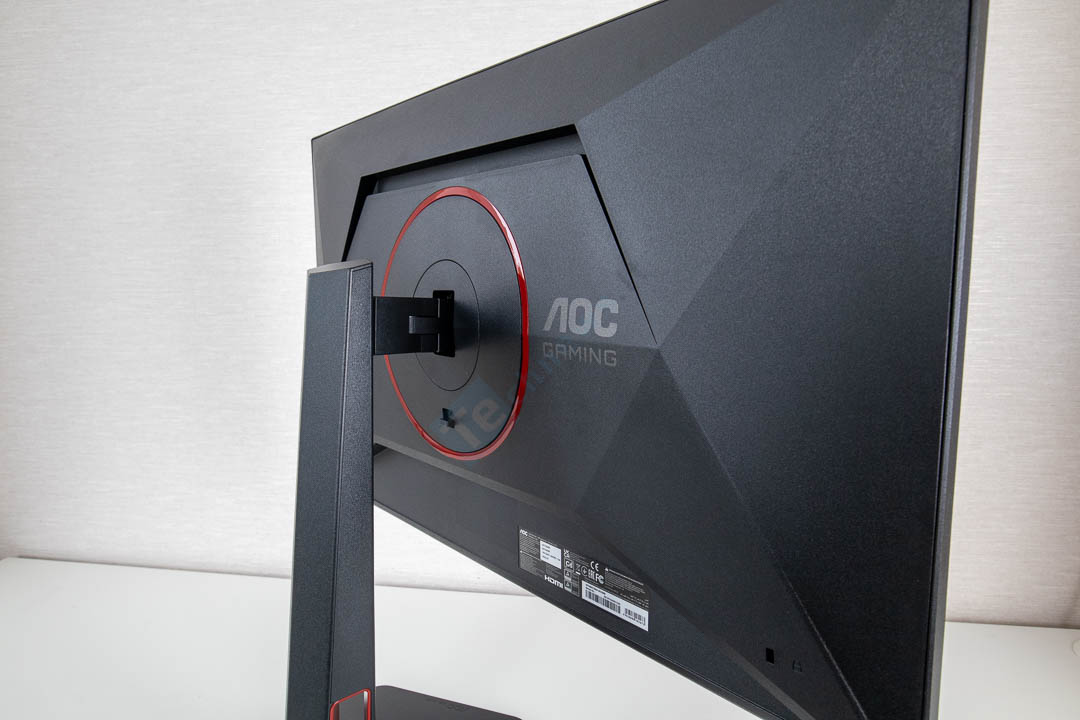 Pirmasis ryškesnis akcentas yra tik monitoriaus galinėje dalyje, ten yra raudonas apskritimas. Taip pat matosi, kad prie galinės dalies gamintojas stipriai padirbėjo ir pridėjo aštrių linijų. Galas atrodo tikrai įdomiai ir net kiek agresyviai. Gaila, kad šito daugelis niekada nematys, nes galinė dalis dažniausiai nusukta į sieną ir retas turi kambario viduryje pastatytą stalą.