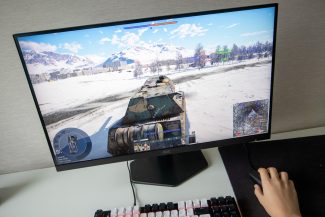 Žaidimų monitoriui reikia greičio, o greitį „AOC GAMING Q27G4ZR“ tikrai turi. Šis monitorius gali pasiūlyti iki 260 Hz atnaujinimo dažnį, bet norint tai pasiekti reikės lįsti į nustatymus ir įgalinti spartinimo funkciją. Tad paprasti naudotojai dažniau sustos ties 240 Hz atnaujinimo dažniu. Taip pat gauname vos 1 ms GtG atsako laiką ir tik 0,3 ms MPRT atsako laiką. Galiu pasakyti, kad tai jaučiasi. Vaizdo atsilikinėjimo ekrane nėra, viskas vyksta sklandžiai ir greitai, būtent taip kaip ir turi būti. Kas dar labai šaunu, kad už šias specifikacijas AOC prašo protingos pinigų sumos. Monitorių galima įsigyti už mažiau nei 200 eurų. Kalbant apie žaidimus tuo viskas neužsibaigia. AOC jau ilgą laiką siūlo įvairias papildomas funkcijas, tokias kaip taikiklio uždėjimas, FPS skaičius ekrane, įvairūs žaidimų režimai, šešėlių pakeitimai ir dar daugiau. Naršydamas po meniu pamačiau dar vieną naują funkciją, tai vaizdo išdidinimas. Ją pasirinkus ekrano viduryje atsiranda apvalus plotas, kuriame vaizdas gali būti išdidinimas nuo vieno iki dviejų kartų. Kaip tai atrodo, galite pamatyti žemiau esančiose nuotraukose. Tai turėtų padėti geriau nusitaikyti, bet prie šios funkcijos tikrai teks pratintis, o gal pripratus be jos ir nebegalėsite. Tiesa, šios išdidinamos vietos keisti negalima ir žaidimas nesitaikant į priešus atrodo keistai. Monitorius taip pat yra „G-Sync Compatible“ sąraše, tad įjungti kadrų sinchronizavimą bus galima problemų su NVIDIA vaizdo plokšte. Žinoma, taip pat veiks ir „Freesync“.
