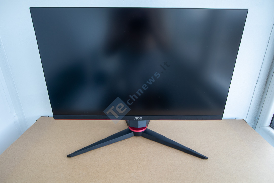Pradėti naudoti „AOC Q24G2A“ bus gan paprasta. Stovas susideda iš pado ir kojos, o juos surinkti galima be papildomų įrankių, užteks apatinį varžtą priveržti pirštais. Po to stovas prie monitoriaus tvirtinasi su specialiu fiksatoriumi.