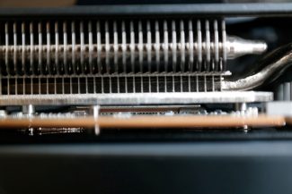 Radiatoriuje priskaičiavome penkis šilumos vamzdelius, kuriems talkina trys axial’iniai, dvigubus rutulinius guolius naudojantys, ventiliatoriai. Kiekvieno skersmuo 90 mm, taip pat palaikomas Zero RPM režimas. Virš GPU kristalo esanti plokštelė kartu surenka šilumą ir nuo GDDR6 atminties lustų. Vaizdo plokštė naudoja ne įprastą termo pastą ir ne termo žele, o ASUS phase-change pavadintą termo paduką. Techniškai aušinimo sistema įvardijama kaip 2,5 aukšto, tačiau realybėje ji yra kompaktiškesnė.