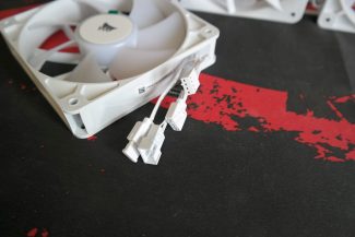 „Corsair“ nenurodo RS120 ARGB ventiliatorių sūkių dugno, tik maksimalius sūkius (2100 RPM). Jie naudoja patobulintus Magnetic Levitation guolius – Magnetic Dome guolius. Statinis slėgis siekia 4,15 mm/H2O, oro srautas 72,8 CFM. Kiekvienas ventiliatorius turi po 8 RGB LED’us, 4-pin PWM ir ARGB kabelius (su moteriška ir vyriška jungtimis). Antivibracinių padukų šie ventiliatoriai negavo, tačiau palaiko Zero RPM funkciją.