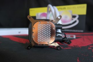 Į CPU bloką žarnelės įeina kampinėmis jungtimis. CPU blokas yra aukštas (69 mm), bet lengvas, nes pagrindinai pagamintas iš plastiko. Ant viršaus dangtelis su „Corsair“ ženklu ir Matrix tipo pašvietimu. Dangtelis laikosi magnetų pagalba, jis gali būti nuimtas ir uždėtas keturiomis skirtingomis pozicijomis. ARGB neturintis „Nautilus“ modelis tokios savybės neturi. Iš CPU bloko išeina 4-pin PWM ir vyriškas/moteriškas ARGB laidai. Neaišku, kodėl „Corsair“ nepasirinko baltų. Tikslios informacijos apie pompos OEM gamintoją nėra žinoma, bet labai galimai tai dviejų fazių dizaino PWM pompa, pasiekianti 3100 RPM. Trifazės pompos pasižymi mažesniu triukšmu ir didesniu efektyvumu.