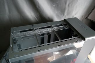 Viršutiniame gaubte perforuotas metalinis tinklelis. Gaubtas nuimamas patraukus už gale esančios medžiaginės skiauties. Viršus pritaikytas 360 mm radiatoriui arba dviejų 140 mm/ 180 mm ventiliatorių kombinacijai. Netgi turime atitinkamas išpjovas custom aušinimo sistemai.