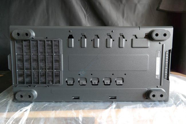 Korpuso dugne PSU dulkių filtras bei tvirtinimai, kaip spėjame, HDD dėklams. Žinoma, tai bus atliekama iš korpuso vidaus.