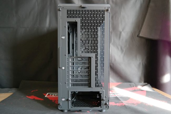 „Epoch XL“ standartiškai naujausiems „Fractal Design“ korpusams neturi išpučiančio ventiliatoriaus. Vietoje to galinė siena stipriai perforuota. Pozicija papildomam 120 mm ventiliatoriui nėra fiksuota aukštyn-žemyn kryptimi. Keista, bet 140 mm įrenginiui reikalingų skylių nėra. Kronšteinas parodo, kad maitinimo šaltinį bus galima montuoti viena iš dviejų pozicijų (ventiliatoriumi aukštyn arba žemyn), o pagal vidinį kraštą kabelius fiksuos medžiaginiai „Velcro“ surišėjai. Juos galima panaudoti ir iš išorės.