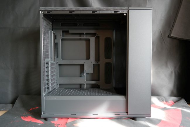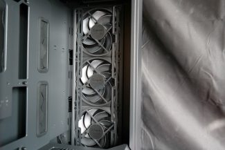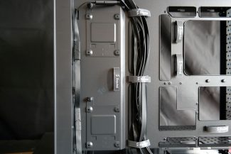 „Epoch XL“ turi išties didelį skaičių Velcro surišėjų, išdėstytų skirtingose ir tuo pačiu strategiškai tinkamose vietose. Dėl šios priežasties kilpučių papildomiems zip-ties surišėjams matome vos vieną kitą. Korpuse dugne turime du dėklus 2,5″/3,5″ įrenginiams. Dėklus galima pastumti arčiau PSU arba išvis išimti. Nusprendus priekyje naudoti radiatorių vieno dėklo greičiausiai tektų atsisakyti liekant su viena vieta HDD montavimui. Visi trys „Momentum 14 RGB“ ventiliatoriai yra tarpusavyje sujungti Type-C jungtis turinčiu kabeliu, kuris pasibaigia 4-pin PWM ir 3-pin ARGB jungtimis. Tai leidžia išlaikyti nepalyginamai didesnę švarą nei esame įpratę matyti įprastus atskirtus PWM ir ARGB laidus.