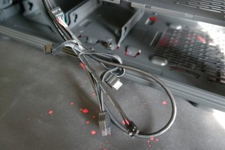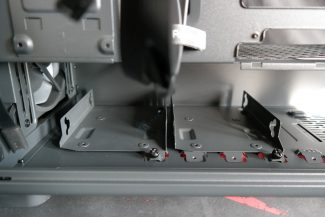 „Epoch XL“ turi išties didelį skaičių Velcro surišėjų, išdėstytų skirtingose ir tuo pačiu strategiškai tinkamose vietose. Dėl šios priežasties kilpučių papildomiems zip-ties surišėjams matome vos vieną kitą. Korpuse dugne turime du dėklus 2,5″/3,5″ įrenginiams. Dėklus galima pastumti arčiau PSU arba išvis išimti. Nusprendus priekyje naudoti radiatorių vieno dėklo greičiausiai tektų atsisakyti liekant su viena vieta HDD montavimui. Visi trys „Momentum 14 RGB“ ventiliatoriai yra tarpusavyje sujungti Type-C jungtis turinčiu kabeliu, kuris pasibaigia 4-pin PWM ir 3-pin ARGB jungtimis. Tai leidžia išlaikyti nepalyginamai didesnę švarą nei esame įpratę matyti įprastus atskirtus PWM ir ARGB laidus.