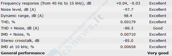 „Z390 Aorus Pro“ negali pasigirti geriausiais tarpiniais rezultatais, gautais su RightMark Audio Analizer. Atvirkščiai, jie yra prasčiausi tarp keturių testuojamų Z390 pagrindinių plokščių. Triukšmo lygis siekia (-97,7 dBA), mažiausia ir dinaminio diapazono vertė, kuri lygi 98,4 dBA. Harmoninio iškraipymo vertė yra labai artima „ROG Maximus XI Gene“ rezultatui (0,00164 % prieš 0,00179 %), tačiau visvien lieka blogiausia. Nepaisant neidealių tarpinių rezultatų „Z390 Aorus Pro“, kaip ir kiti trys Z390 modeliai, gauna septynis excellent ir vos vieną good įvertinimą.