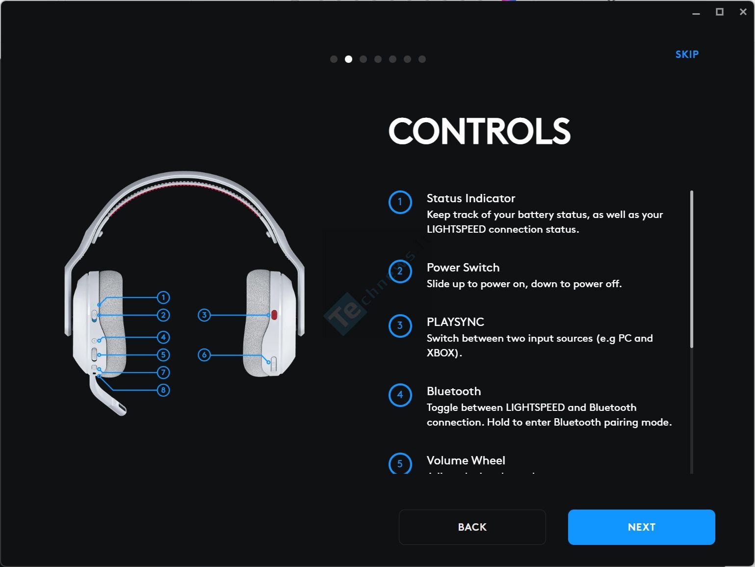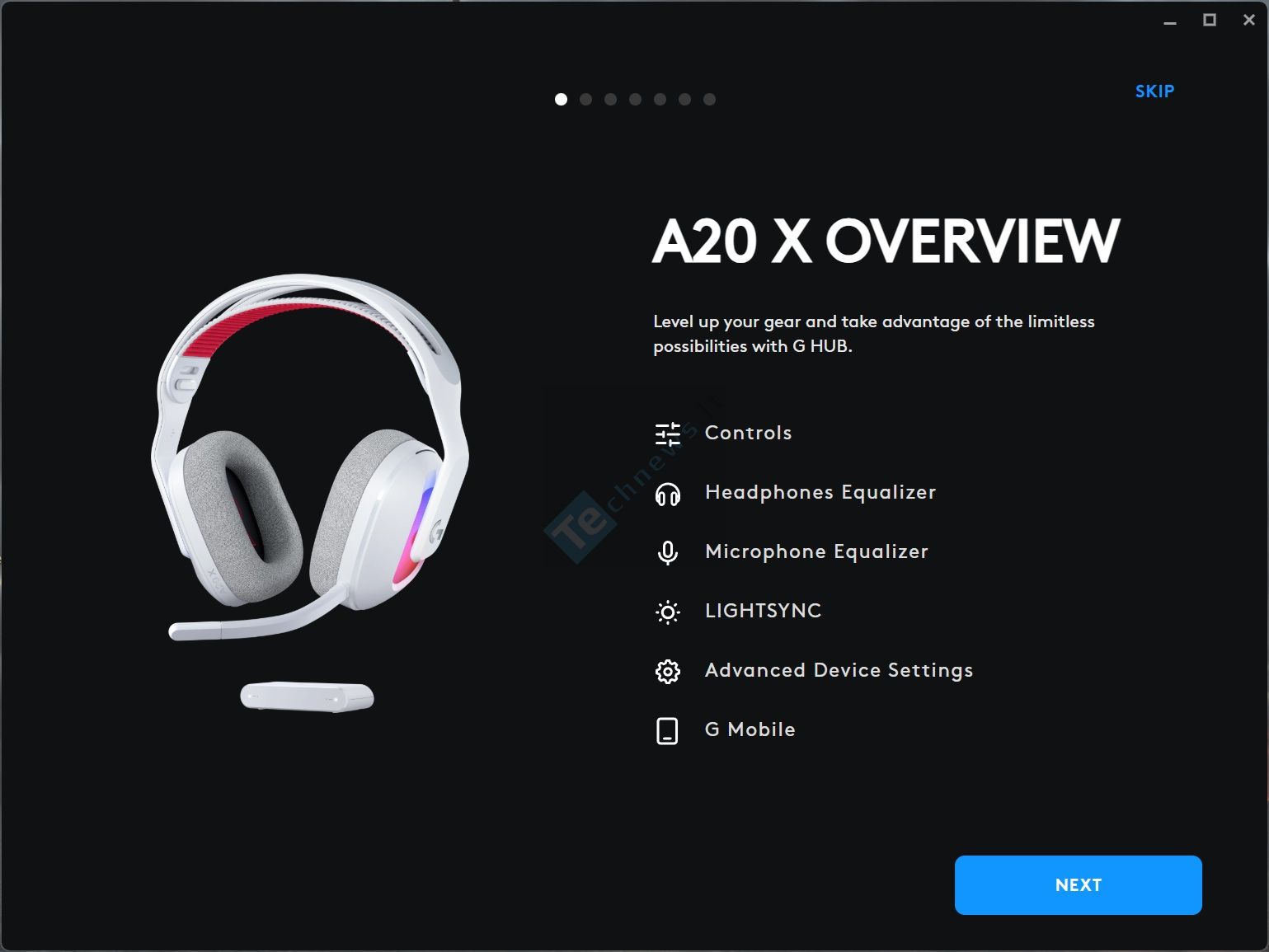 Pirmą kartą prijungus įrenginį „G-Hub“ parodo keletą skaidrių ir paaiškina kaip veikia ausinės ir kokios yra pagrindinės funkcijos. Keletą skaidrių pridedu pasižiūrėti. Labai įdomu, kad šias ausines taip pat galime valdyti per mobilią programėlę, čia ypač naudinga tiems, kas ausines naudos su konsole.