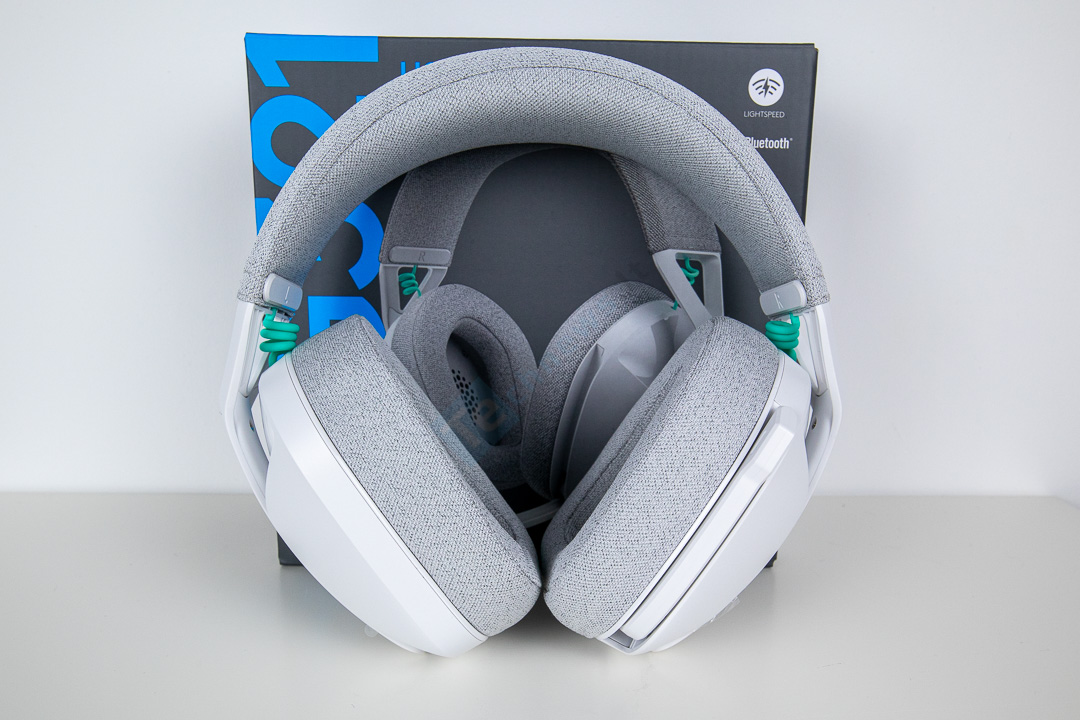 Paėmus ausines jaučiasi lengvumas, bet kaip minėjau, konstrukcija nėra tvirta. Panaudota plastmasė yra pakankamai kokybiška, pigumo nesijaučia, bet tiesiog premium jausmo tikrai nėra. Taip pat panaudota maloni pagalvėlių medžiaga, taip ji nėra aukščiausio lygio, bet tikrai atrodo kokybiškai, tiek liečiant, tiek dėvint ausines. Kadangi „Logitech G321 Lightspeed“ nėra brangios ausinės, tai su jomis negauname RGB apšvietimo, bet yra Bluetooth ryšys.