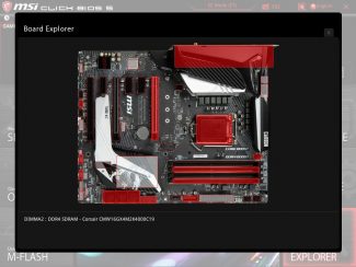 Advanced Mode režimu Click BIOS 5 standartiškai suskirstomas į šešias atskiras sekcijas. OC Profile siūlo šešis laisvus profilius, kuriuose galima išsisaugoti UEFI BIOS konfigūraciją, taip pat viską iškelti į laikmeną ar atvirkščiai – profilį užkrauti iš laikmenos. Board Explorer įrankis, parodantis kurie lizdai užimti ir kas juose įstatyta, jau kurį laiką praradęs savo populiarumą, tačiau MSI vartotojui jį vis dar tebesiūlo.