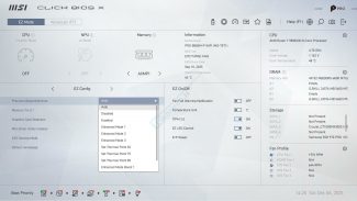 Rankinis BIOS atnaujinimas į šiuo metu naujausią 7E71v1A45 versiją (AGESA 1.2.0.3g) buvo sklandus. Naudojame „G.SKILL TridentZ“ 24 GB x2 DDR5-7200CL36 atmintį, pasirinkę XMP profilį ir rankiniu būdu dažnį sumažinę iki DDR5-6000. Sistema užsikrovė iš pirmo karto ir testavimo metu stabilumo problemų nebuvo. Nuo paskutinio susidūrimo su MSI motinine plokšte praėjo daug laiko – Click BIOS stipriai pasikeitęs, tačiau netruko daug laiko priprasti prie naujo nustatymų išdėstymo. Svarbiausi nustatymai, kaip PBO, X3D Gaming Mode, (A)XMP, papildomi DRAM profiliai, – „po ranka“ EZ Mode lange. Turime nustatymų paieškos variklį, profiliavimą ir net BIOS Log, kuris parodo sesijos metu visus atliktus nustatymų pakeitimus. Navigaciją po UEFI BIOS palengvina grįžimo funkciją atliekantis dešinysis pelės mygtukas. Nors atsisakyta profilių (silent, performace ir kitų) ventiliatorių valdymo galimybės plačios: į pokyčius sūkiai reaguoja realiu laiku, galima priskirti skirtingus šaltinius ar pasidaryti ventiliatorių grupę.