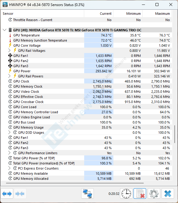 5070 Ti Gaming Trio – 1650 RPM ir tikrai gerokai maziau 39 dBA 🙂