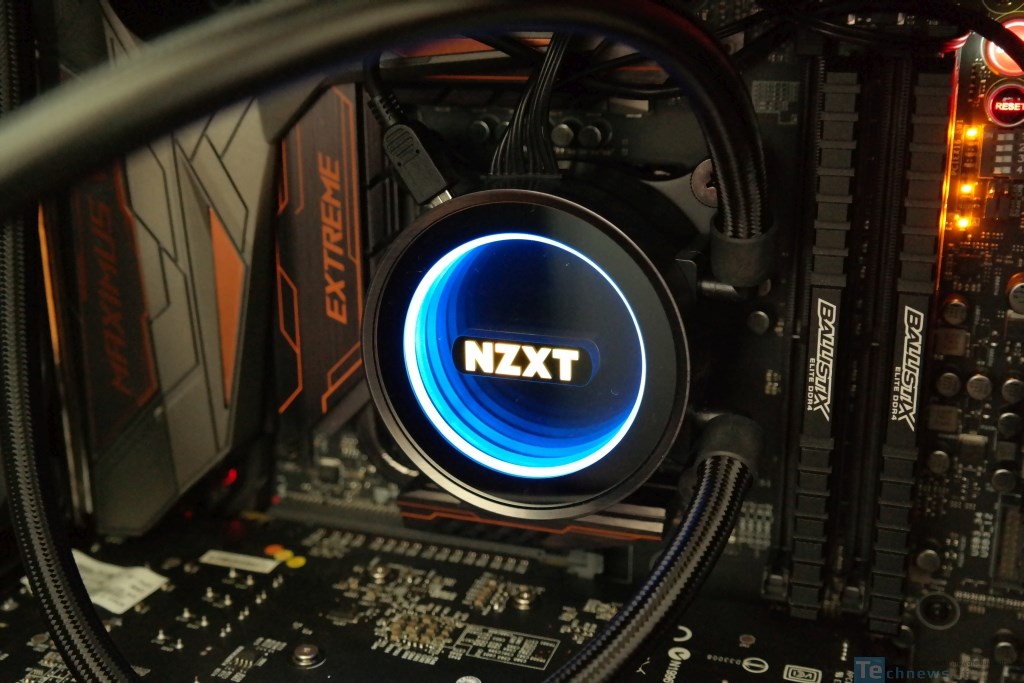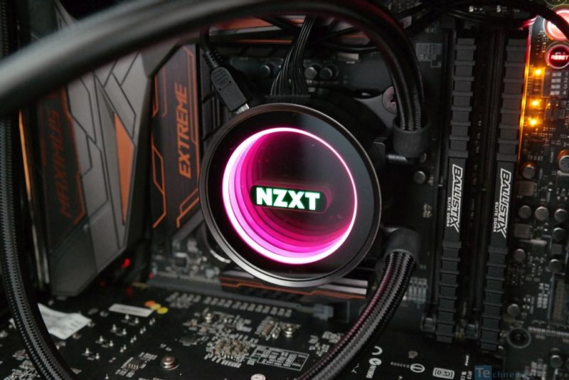 Tai yra tik fotoaparatu padaryti kadrai, kurie toli gražu negali atskleisti stulbinančių RGB LED efektų. Kaip minėjome, skirtingas pašvietimas gali būti suteiktas tiek NZXT logotipui, tiek CPU bloko žiedui. Galimai viską realistiškiau pademonstruos vienas iš video (apačioje fotografijų).